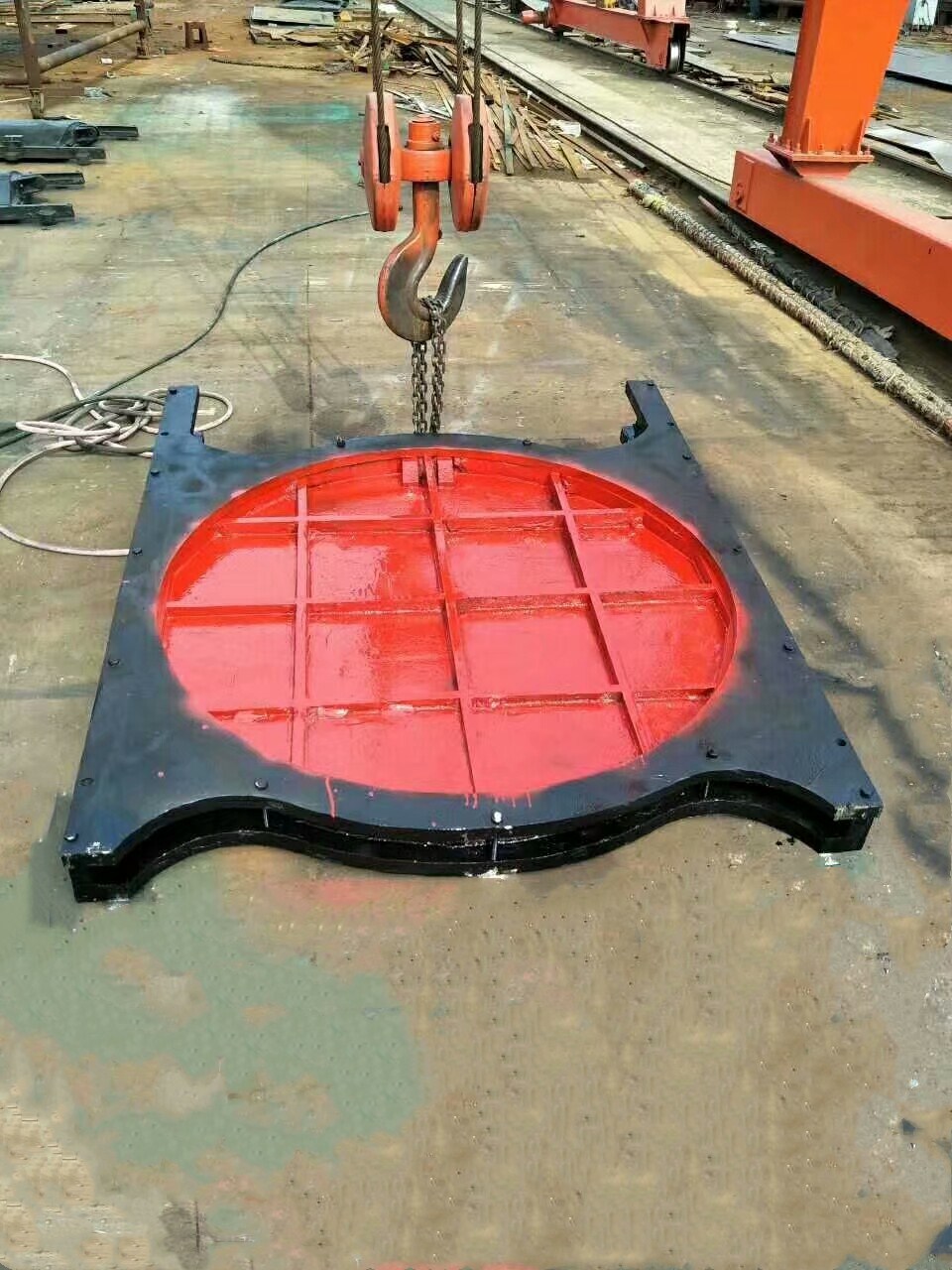鑄鐵鑲銅圓閘門由門框、閘板、導(dǎo)軌、密封條、可調(diào)整密封機(jī)構(gòu)等部件組成。具有結(jié)構(gòu)簡單,密封性能好,耐磨性強(qiáng),操作簡單,安裝方便,使用壽命長,規(guī)格齊全,適用性廣等特點(diǎn)。