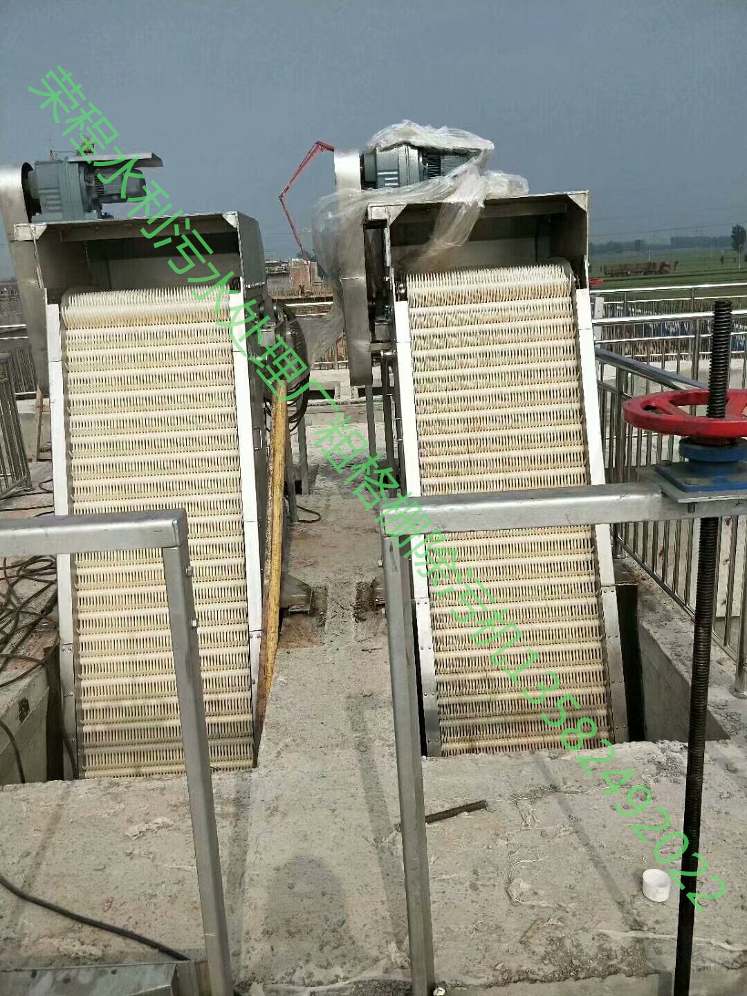 1、目前國內一些廠家生產的格柵尺寸小于進水渠的格柵預留尺寸,污水中的部分柵渣會從縫隙之間繞過,影響了除渣效果。設計時將二者間隙控制在2cm以內,保證除渣效果。