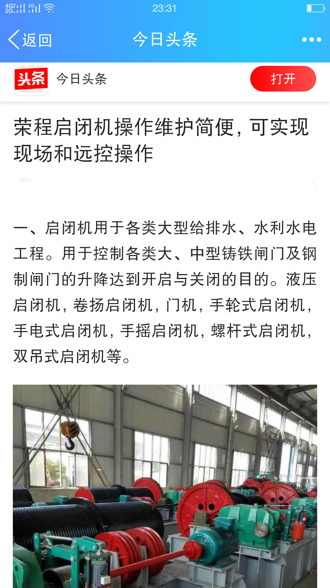 榮程水利卷揚啟閉機上今日頭條啦,榮程水利生產的水利設備質量好價格有被客戶認可,卷揚啟閉機又單調點和雙吊點兩種。卷揚啟閉機以分為QPQ型普通卷揚啟閉機、QPK型快速卷揚啟閉機、QPG型高揚程卷揚啟閉機、QPT型臺車式卷揚啟閉機,QPM型門式卷揚啟閉機,QH型弧門卷揚啟閉機。卷揚啟閉機又分為:平門卷揚式啟閉機;弧形門卷揚式啟閉機;雙吊點卷揚式啟閉機;快速卷揚式啟閉機;移動式臺車啟閉機;雙吊點卷揚式啟閉機分為:集中驅動和單獨驅動兩種。
